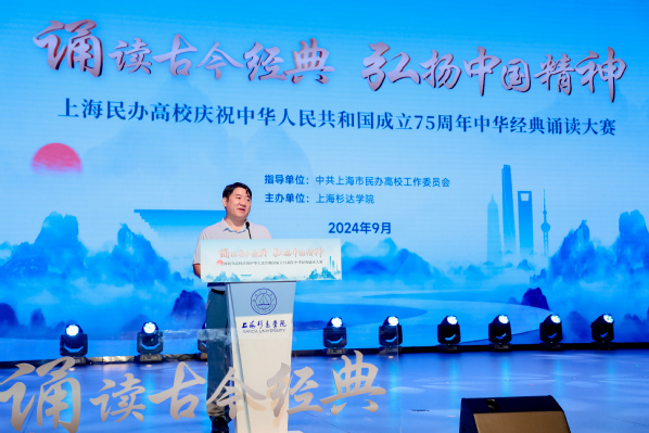 诵读古今经典,弘扬中国精神。此次诵读大赛旨在深入学习贯彻党的二十大精神,热烈庆祝中华人民共和国成立75周年,团结凝聚广大青年学子听党话、跟党走,振奋精神、展示风采。此次诵读大赛通过15所民办高校莘莘学子的热情演绎,通过中国通用语言文字汉语的精确传达,让我们对从古至今的中华经典词文有了更深刻的理解,同时也是广大民办高校庆祝中华人民共和国成立75周年的献礼。(通讯员 吕倩)