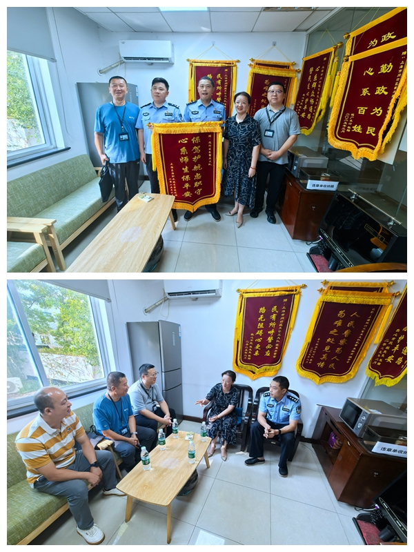 为表达感谢之情,9月17日上午,副校长郁萍带领后勤保卫处黄海、张政军、刘强、张晨昕一行,专程赴闵行区塘湾派出所和交警五大队开展慰问,并代表学校送上锦旗,衷心感谢一线民警在迎新期间为维护校园周边治安稳定和交通安全所付出的辛勤努力。