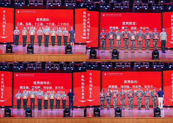 会上,现场播放的军训视频短片,引领全场重温了那段充满汗水与欢笑的成长历程。党委书记曹蓉蓉宣读了军训表彰名单,校领导共同为获奖的集体与个人颁发荣誉证书,承训部队领导杨增国为“优秀教官”荣誉获得者颁奖。