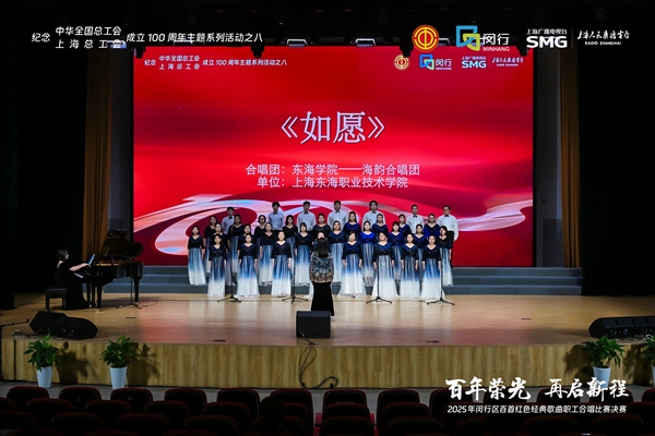 10月16日,“百年荣光 再启新程”2025年闵行区百首红色经典歌曲职工合唱比赛决赛在莘庄工业区文化体育活动中心圆满落幕。来自全区各行业系统的19支职工合唱团,以音乐为媒介,用饱满的热情礼赞中华全国总工会及上海市总工会成立100周年的光辉历程,奉献了一场高水准的艺术汇演。经过激烈角逐,我校海韵教工合唱团凭借深情演绎的歌曲《如愿》,在全区百支队伍中闯进决赛,并在19支决赛队伍中脱颖而出,荣获大赛“优秀奖”,充分展现了我校教职工昂扬向上的精神风貌与卓越的艺术风采。