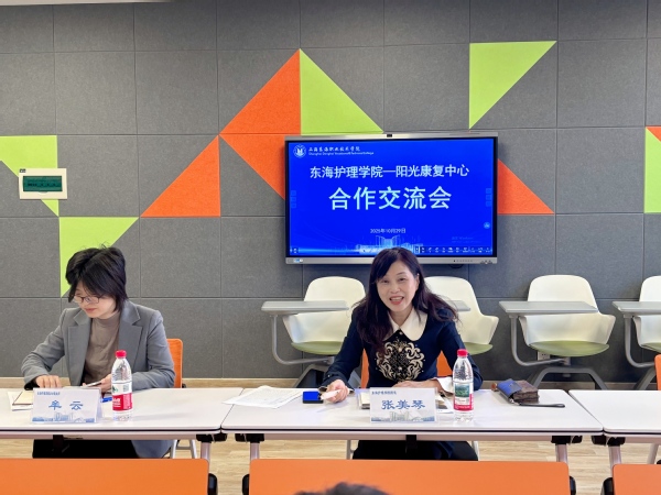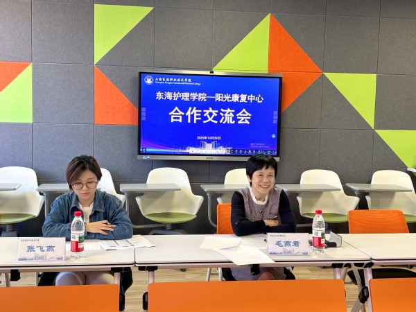 为深化产教融合,推进护理康复专业高质量发展,10月29日,东海护理学院与同济大学附属养志康复医院合作交流会召开。护理学院院长张美琴、任课教师李佳颖出席会议,养志康复医院护理部主任毛燕君、教学干事张飞燕受邀参会,双方就专业建设、人才培养、康复护理专业教学合作等方面展开深入交流。