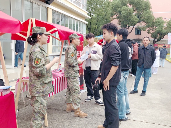 咨询现场气氛热烈,工作人员围绕征兵政策、入伍条件、优待政策、报名流程、体检事项、发展前景等热点问题进行耐心解读,针对学生们关注的学费补偿、升学就业等学业支持政策进行详细阐释,让学生们对参军入伍的全流程与广阔前景有了清晰而全面地认知。我校退役学生士兵积极参与、充分发挥朋辈引领作用,他们以真挚的情感、生动的语言,分享了在部队的难忘经历,鼓励同学们携笔从戎,保家卫国。
