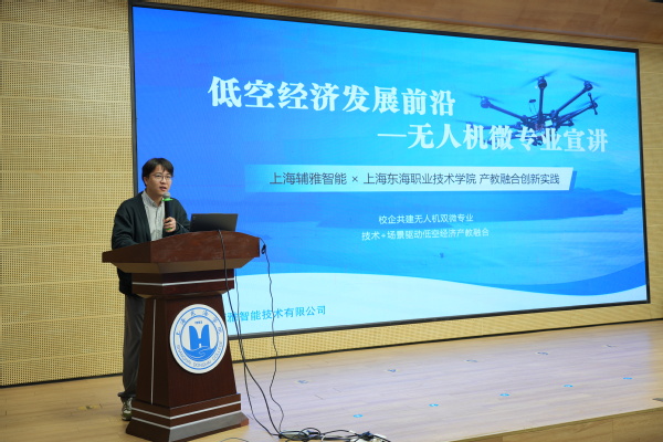 在微专业宣讲环节中,上海辅雅智能技术有限公司总监、微专业企业方负责人王耀辉老师介绍了“无人机组装测试”微专业开设情况,他指出,该专业采用“校企共建、课证融通”教学模式,修读过程中学生可自愿考取中国民航局CAAC无人机驾驶员执照和装调检修工职业资格证书;信息工程学院袁武刚老师介绍了“人工智能技术应用”微专业开设情况,该专业依托校企“双师型”团队,结合”1+X“证书、华为、百度等企业认证内容开展教学,提高学生进入AI应用开发、算法测试、系统集成与运维等岗位的就业竞争力。