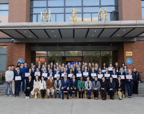 随后,领导和嘉宾向法国-东海YES项目学员逐一颁发了由上海东海职业技术学院校长贺瑛签发的结业证书,张居阳、Hawa等向优秀志愿者颁发了荣誉证书。全体与会师生在图书馆前合影留念。