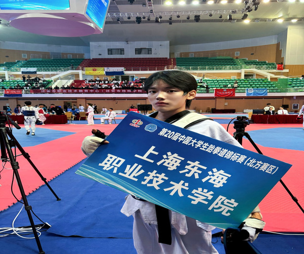2025年11月16日,于河北唐山九江体育中心举行的第20届中国大学生跆拳道锦标赛(北方赛区)圆满落幕。上海东海职业技术学院的姚宇家同学在强手如林的竞争中脱颖而出,一举夺得个人竞技男子乙组54公斤级的冠军,展现了东海学子高超的竞技水平和昂扬的精神风貌。