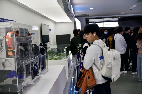 在航天科技展区,师生通过高精度卫星模型、火箭发射模拟系统及航天器实物展品,系统学习我国航天事业从“东方红一号”到空间站建设的跨越式发展历程。讲解员结合嫦娥探月工程、北斗导航系统等重大科技成果,深入阐释“特别能吃苦、特别能战斗、特别能攻关、特别能奉献”的载人航天精神。机制2401班张赵轩表示:“通过近距离观察长征火箭发动机实物,深刻认识到核心技术自主可控的战略意义。作为机电专业学子,我们将把航天人追求‘零失误’的质量标准融入专业技能训练全过程。”