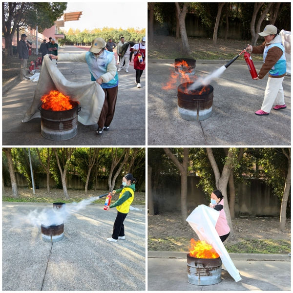培训中,保卫处邓友君详细讲解了灭火毯和灭火器的正确使用方法,并组织参训人员分批进行了实操灭火训练。在专业指导下,参训人员依次练习了使用灭火毯和二氧化碳灭火器扑灭火焰,掌握了这两种灭火工具的使用技巧,增强了面对火灾时的心理素质和现场处置能力。最后,微型消防站队员们进行了专业强化训练,包括穿戴消防服、一带一枪和两带一枪等科目的训练。参训队员们反应迅速、操作熟练,展现了良好的业务素养和团队协作能力,提升了应急响应和初期火灾扑救水平。