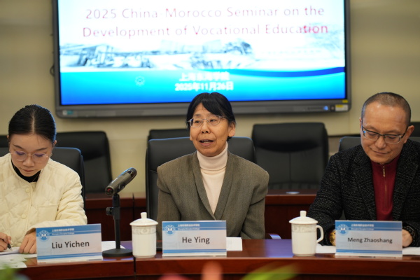 11月26日,中国-摩洛哥职业教育发展研讨会在上海东海职业技术学院匠兴苑B303会议厅召开。本次研讨会聚焦“深化职教合作,共促发展共赢”,汇聚中摩两国职业教育领域代表,共叙合作情谊、共画发展蓝图。摩洛哥方面出席研讨会的有:摩洛哥私立职业教育联合会主席阿卜杜拉赫・本希拉勒先生、副主席/校长达迪西・贾瓦德先生,摩洛哥拉巴特私立高等专科学院秘书长鲁伊・辛德女士、校长本赛德・哈利勒先生,摩洛哥乌季达职业技术发展中心总经理迪内·穆罕默德先生,拉巴特市场营销与计算机管理应用学院校长克里乌伊勒·阿卜杜勒瓦赫德先生,摩洛哥私立信息设计学院校长埃尔凯尤比·阿卜杜勒阿齐兹先生等;东海学院校长贺瑛教授、国际交流处负责人和相关学院院长出席。研讨会由我校国际交流处处长孟昭上主持。