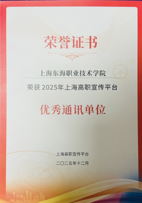 在12月5日举行的上海高职宣传平台2025年通讯联络培训会上,我校宣传工作再获佳绩:上海东海职业技术学院被授予“2025年上海高职宣传平台优秀通讯单位”称号,党委宣传部刘会娟老师荣获“2025年上海高职宣传平台优秀通讯员”荣誉称号。此次获奖,是对我校长期以来高度重视宣传思想工作、持续提升内容质量、积极对接高职宣传平台的充分肯定。