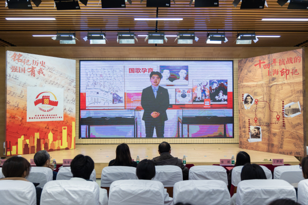 课程在庄严的升国旗视频中拉开序幕。马克思主义学院教师王晓默作为课程主持人,首先从中华人民共和国国歌《义勇军进行曲》的诞生于上海讲起,启发学生思考这首歌曲如何从一个城市的音符,升华为整个民族在危亡时刻的精神号角,并由此开启对上海十四年抗战烽火岁月的追溯。