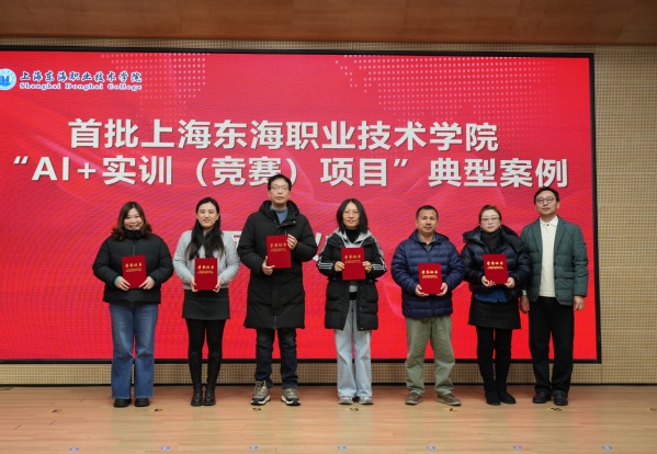 在首批上海东海职业技术学院“AI+实训(竞赛)项目”典型案例颁奖仪式上,校“AI+教育教学”推进工作领导小组为获奖者颁发了奖状。获得一等奖的李莎和牛晓伟两位老师分别作案例分享。