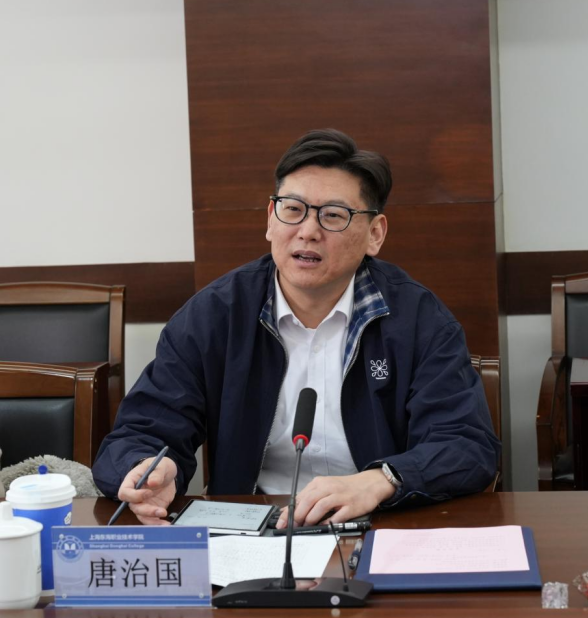 唐治国副局长介绍市级相关人社政策及闵行区人社竞赛工作开展情况,高度肯定东海学院在技能人才培养、职业技能大赛等方面取得的优异成绩。重点解读课政融通工作落地路径与校企协同育人机制创新方向,强调政策资源向一线教学场景倾斜的务实导向,指出人工智能训练师的市场紧缺性,建议学校加快布局AI训练师认证培训体系,为社会输送急需的复合型技术人才。