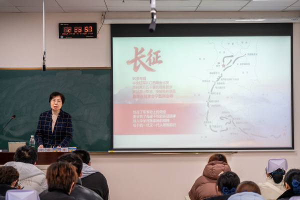 “长征是人类历史上的奇迹,更是中国共产党人精神谱系中巍然屹立的丰碑。”学校党委书记曹蓉蓉在讲课中表示。她指出,“党的建设”是伟大长征精神得以落地生根的关键“组织密码”,在风雨如磐的长征路上,一个个党支部就是茫茫暗夜中的星火,将崇高的信仰转化为具体的行动。她强调,伟大精神的价值在于跨越时空、照亮前路,长征精神已熔铸进中国共产党人的血脉,在共和国发展的每一个阶段都转化为磅礴的实践力量。