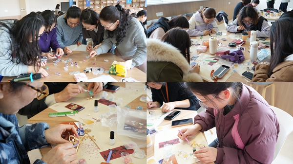 为丰富女教职工的精神文化生活,提升艺术修养,感受传统工艺之美,3月20日中午,校工会在东海源东702教工之家举办“螺钿巧饰·襟上添花”——螺钿胸针DIY体验活动。活动吸引了来自学校各部门近30名女教职工热情参与,在春日的午后共同体验了一场指尖上的非遗文化之旅。