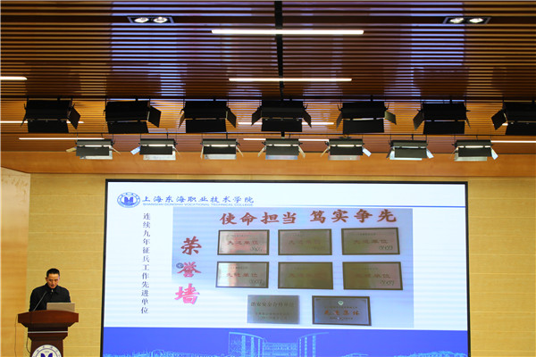 会上,“2020年,在我校党委和征兵工作领导小组的领导下,有44名学生被闵行区征兵办批准入伍,超额完成了上海市征兵办为我校下达的43名的征集计划,东海学院已连续9年被上海市评为征兵工作先进单位”武装部长蒋久泉在作2020年征兵工作情况总结时说。并对2021年征兵工作的要求及注意事项做了说明。