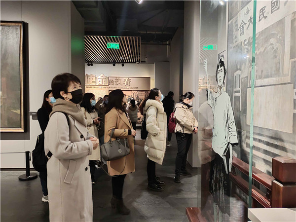 展馆中,师生们分别来到旧民主主义革命时期厅、新民主主义革命时期厅及社会主义革命时期厅参观学习,瞻仰革命先烈的英雄事迹。展馆内庄严肃穆,通过上千余件文物和大量照片、图片,展示了自鸦片战争以来为“独立、民主、解放、建设”而战斗和牺牲在上海的200多位革命先烈的光辉事迹。二十四烈士雕塑多媒体剧场,采用雕塑、光影、音乐、舞蹈、朗诵五维艺术的手法将龙华二十四烈士生动再现,向观众演绎英烈们由生而死,死而永生的感人故事。“龙华千古仰高风,壮士身亡志未穷。墙外桃花墙里血,一般鲜艳一般红。”从旧民主主义革命到新民主主义革命,无数革命志士抛头颅洒热血,正是他们敢于吃苦,不怕牺牲的精神换来了我们伟大中华人民共和国的成立,党员师生们也真切地感受到,只有中国共产党才能领导中国人民建设和发展中国特色社会主义,也深刻认识到作为一名党员应该有的责任和坚守。