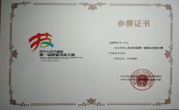 我校艺术学院服装183班马梓轩作为上海代表队成员赴广州参加比赛,荣获时装技术赛项优胜奖,进十入国家集训队,为我校争得了荣誉。(通讯员 万黎黎)