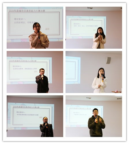 12月17日,2020年度辅导员素质能力大赛决赛成功举办,各学院学工办主任、全体辅导员出席观摩比赛。经过初赛、复赛的激烈比拼,6名辅导员进入本次决赛。决赛由党委副书记王玉、学工部部长杨瑾、社科部副主任龙燕、学工部副部长王莉娜担任评委。