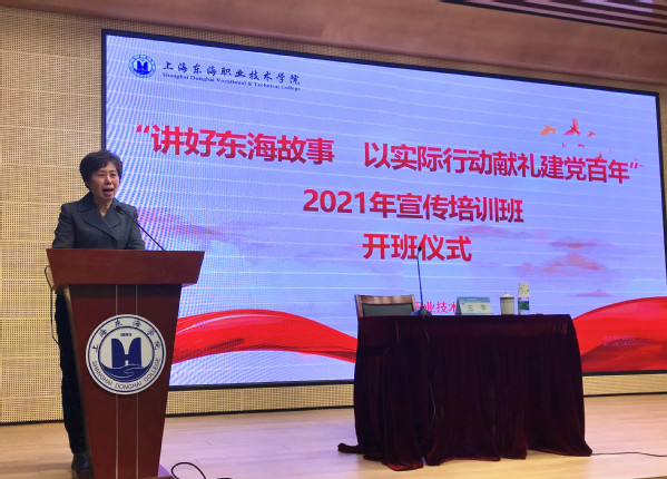 3月25日下午,东海学院“讲好东海故事,以实际行动献礼建党百年”2021年宣传工作培训班开班仪式在匠兴苑学术报告厅举行,党委副书记王玉主持。