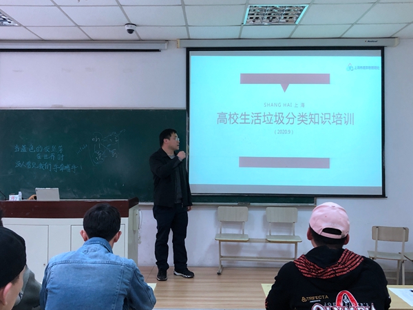 3月25日下午高校生活垃圾分类知识培训在东海源南411教室举行,经管学院、航空学院、机电学院、传媒学院的三十余名学生代表参加。
