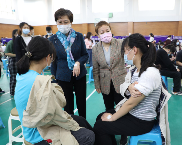 现场,师生们全程佩戴口罩,在出示身份证、条形码、接种同意书完成接种登记后,经工作人员指引,有条不紊地依次排队入馆接受疫苗接种。各学院相关工作负责人以及辅导员、学校校医全程陪同,为学生们的接种工作保驾护航。按照要求,完成接种后师生们需在留观区等待观察30分钟,无异常症状后即可依次返回学校。校党委书记曹蓉蓉、副书记王玉、校长助理黄樑等到现场看望接种师生,询问他们各自的接种情况,并再次叮嘱他们接种后的注意事项。