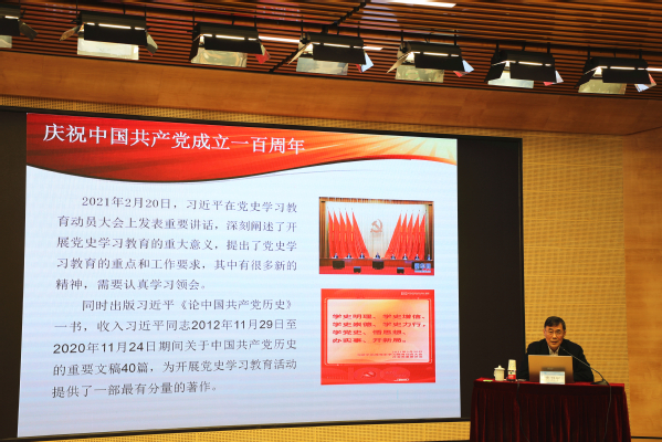 会上,华东师范大学政治学系教授齐卫平应邀作《建党百年学党史,激励全党》主题讲座。“百年老党为什么能够始终焕发青春活力?”“超大规模政党能不能保持坚不可摧?”他通过提问的方式,引发大家探究中国共产党成功的密钥,求知中国共产党的未来。他从建党百年学党史的重大意义、树立正确党史观、党史学习教育的重点问题、中国共产党百年发展壮大的基本经验四个方面展开介绍,列举了大量生动详实的案例,为全体党员上了一堂精彩的党史课。