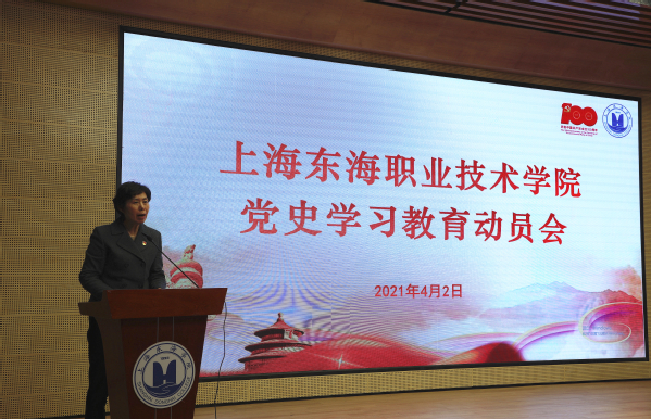 4月2日下午,上海东海职业技术学院党史学习教育动员在学校匠兴苑学术报告厅召开,党委书记曹蓉蓉传达习近平总书记在党史学习教育动员大会上的讲话精神,并对校党委开展党史学习教育进行安排部署,党委副书记王玉主持。