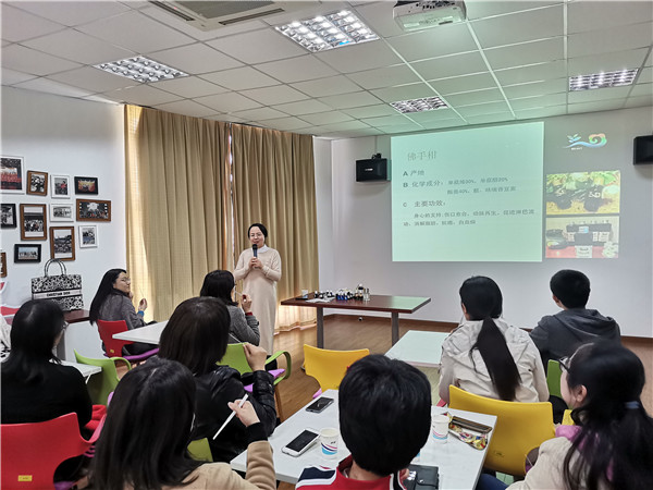 陆向红在活动上进行了细致入微的讲说。由芳香疗法的发展历史,到芳香产品的专业知识,再到芳香疗法涉猎到的保健范围。几个简单易学的小动作,几滴好吸收又不腻的调和油,几口清爽别致的花露饮水,都让现场的教职工颇感受用。现场讨论气氛十分活跃。