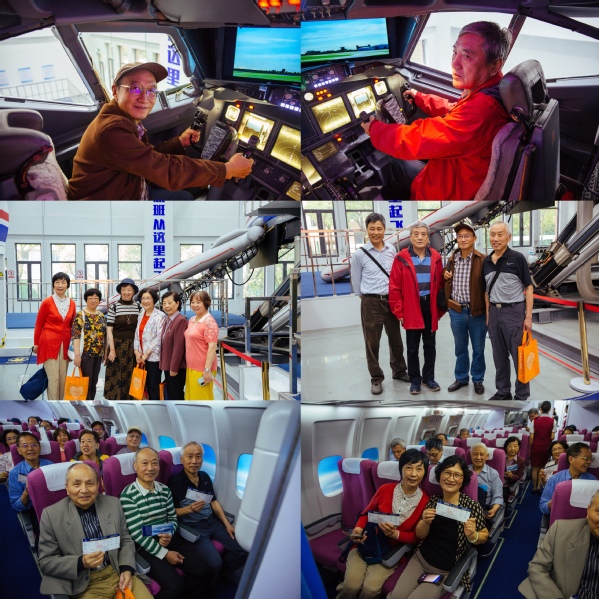 会后,老专家一行兴致勃勃地到匠兴苑实训大楼参观体验航空学院进出港模拟实训室、A320静态舱及波音737动态模拟仓。下午,老专家们还乘车前往紫竹高新区参观考察。