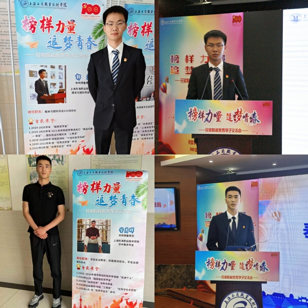 郭宸是2019—2020学年国家奖学金获得者、校优秀毕业生,他以“追梦拼搏,绽放青春”为主题,分享自身在班级管理中的所思、所想、所悟,表示学生干部要从思想、学习、实践三方面起到模范带头作用;管月晖是2019-2020学年国家励志奖学金、上海市优秀毕业生,他分享自己励志成才的经历,表示部队和学校的训练与磨练,让自己迅速成长,表示青年学生要懂得感恩,能够奉献自我。