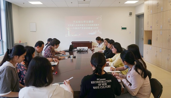 曹蓉蓉从建党初心出发,讲述中国共产党承诺践诺100年的光辉历程。她说,1840年至1921年,中国沦为半殖民地半封建社会;1921年至1949年,中国共产党领导人民救中国;1949年至今,中国共产党领导人民发展中国。从1840年鸦片战争至今,中国走了一个惊心动魄的“V”字型,而关键的拐点就是1921年7月中国共产党的建立,找到救中国和发展中国的正确道路,一路上行,强势崛起。继而得出结论:只有中国共产党才能领导人民救中国和发展中国,使中华民族站起来、富起来、强起来。她指出,“中国共产党为什么能”,原因在于:第一,始终坚持社会主义方向;第二,始终坚持以马克思主义为指导;第三,始终坚持以人民为中心;第四,始终坚持党的领导和党的建设两手抓、两手硬;第五,始终坚持革命精神、红色基因、自我革命精神和光荣传统;第六,始终坚持真理、修正错误,汲取正反两方面历史经验。最后,她还就教师们工作中遇到的问题以及个人发展问题与大家进行交流,强调为群众办实事的中心思想,要求既要发扬讲理论也要付诸于行动的实干精神。