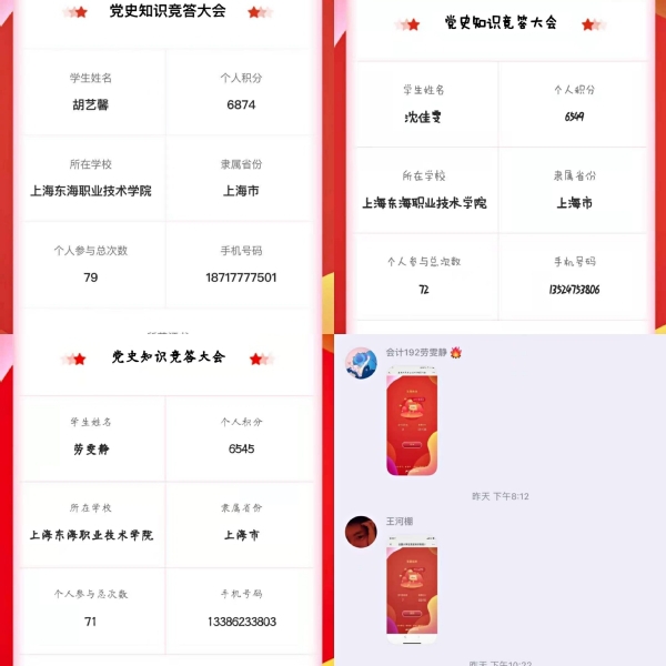 为深入学习贯彻习近平总书记在党史学习教育动员大会上的重要讲话精神,在广大青年中深入、生动地开展党史学习教育。从4月8日起,学生工作部积极组织在校生参与党史知识“云答题”活动,6月6日起,组织观看10期“全国大学生党史知识竞答大会”,累计2500余名学生参与。