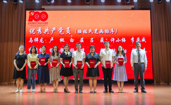 校长王刚宣读表彰决定,表彰学校开展“两优一先”评选中获得优秀共产党员、优秀党务工作者和先进基层党组织荣誉称号的个人和组织。