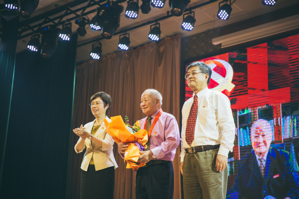 大会为校董事、创办人之一陶钧同志颁发“光荣在党50年”纪念章。金灿灿的纪念章,辛勤奉献路,这是陶钧同志的荣耀,更是东海学院的光荣。钧同志从学生时代入党,至今已有56年党龄。从大学教师到学校创办者,他一生奉献教育,为莘莘学子开启成才之路,为党服务,矢志不渝。“我是在大学期间班级第一批入党的学生之一,这是我一辈子最引以为傲的事。”陶钧在领取纪念章时说。
