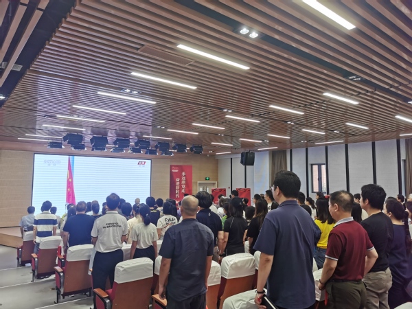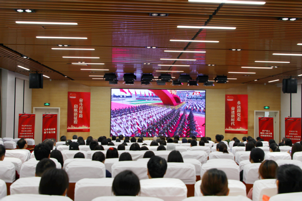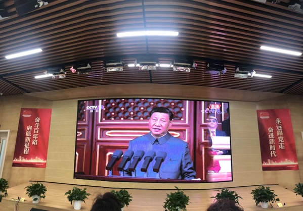 71日上午8时,庆祝中国共产党成立100周年大会在北京天安门广场隆重举行,中共中央总书记、国家主席、中央军委主席习近平发表重要讲话。东海学院师生党员代表分别在匠兴苑学术报告厅、各支部会议室收听、收看庆祝大会,聆听和学习习近平总书记“七一”讲话精神。会场里,党员们精神振奋,热情高涨。庆祝大会结束后,大家畅谈学习心得,久久不肯离场。