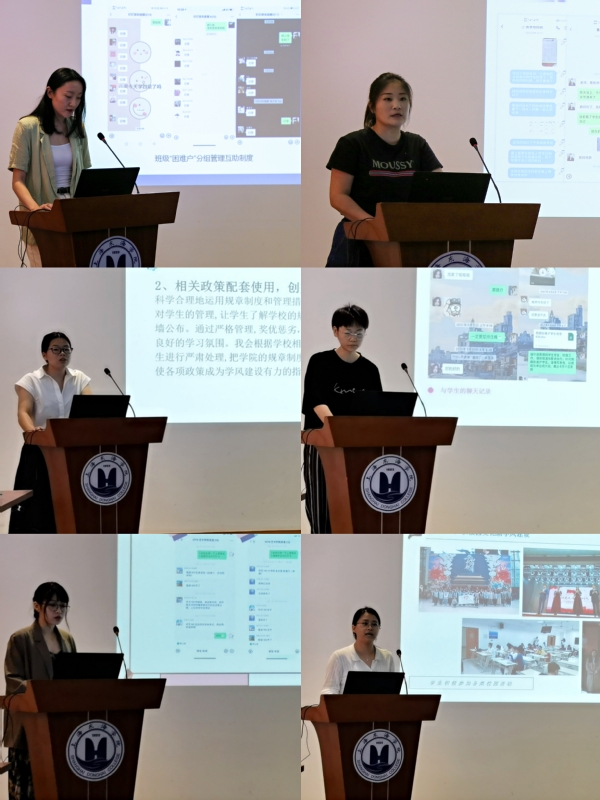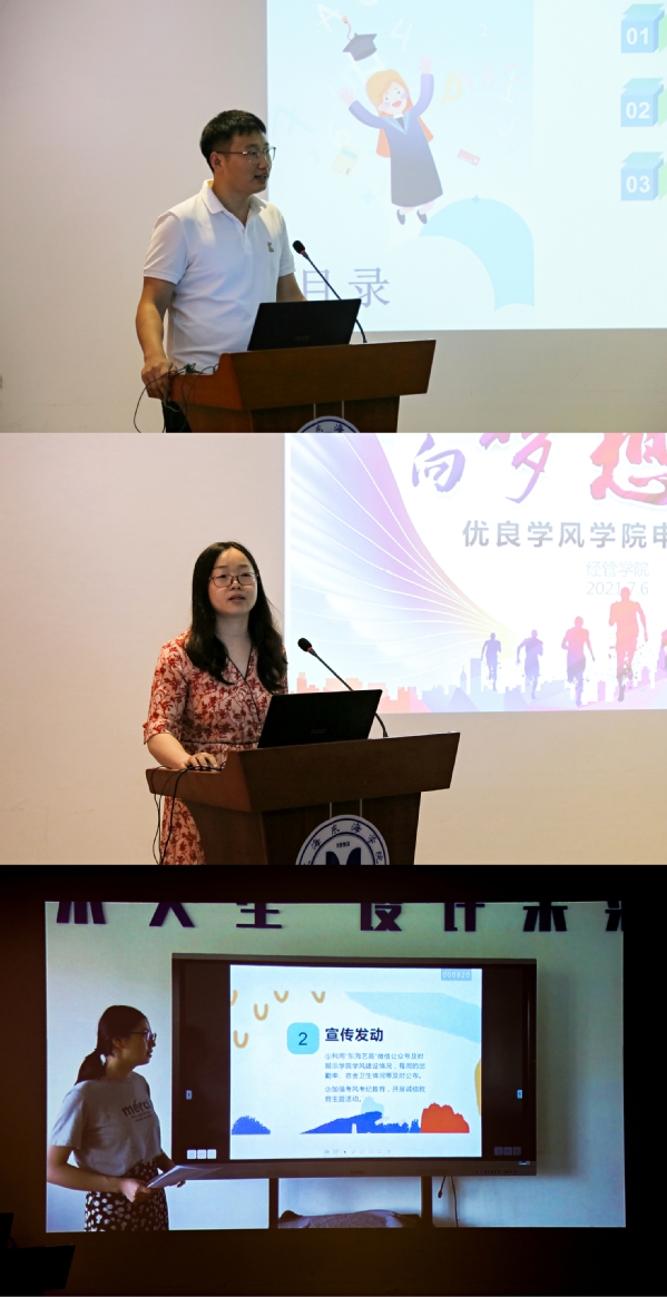 在7月6日学工部召开的2020——2021学年“优良学风学院”“学风建设突出贡献奖”答辩会上,经管、教育、艺术设计学院学办主任根据专业特点,分别从学风建设采取的系列措施、活动开展、成果特色等方面作分享,并着重介绍了学院关于进一步改进和完善学风建设的制度体系。辅导员则结合班级特点,分别从班级管理、主题活动、班级学风制度建设等方面进行分享。