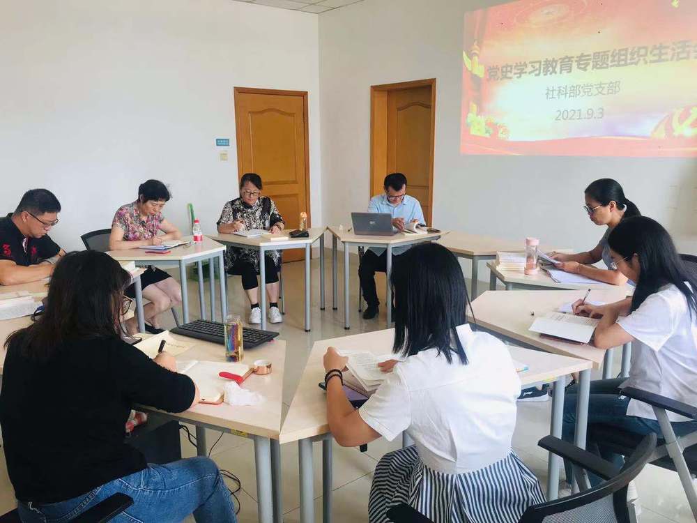 会上,社科部党支部书记陈飞首先介绍了上半年部门组织生活活动学习情况,接着教师们结合学习习近平总书记在党史学习教育动员大会上的重要讲话和党中央指定的四本学习材料,重点学习习近平总书记在庆祝中国共产党成立100周年大会上的重要讲话精神的学习心得和假期里的所思所想,从党的初心、长征精神、四个自信、理想信念和“两化两结合”等方面都进行了感悟交流和讨论,并对新学期的学习工作进行了深入研讨。