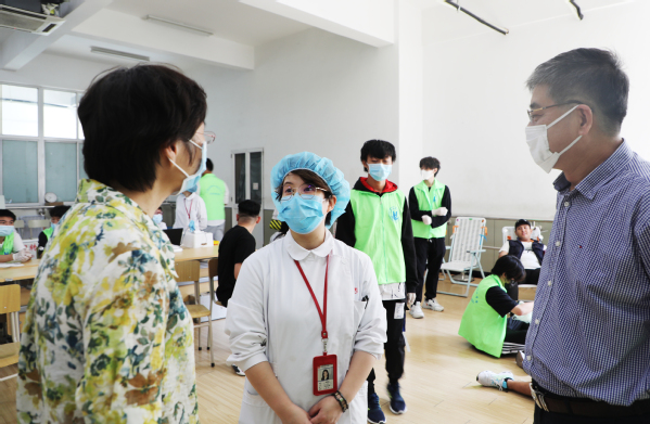 活动当天,刚过七点,报名参加无偿献血活动的学生就已经早早地到了抽血现场。在献血站的医务工作人员到场后,紧张又热烈的无偿献血活动正式拉开帷幕。校长王刚、校党委书记曹蓉蓉来到现场,亲切慰问参加无偿献血的学生,并为他们加油打气。