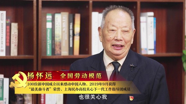 杨怀远将他立足本职岗位奉献的事迹和师生们进行了分享。今年84岁的杨怀远是原上海海运局长柳轮客运部服务员,数十年坚持用小扁担义务为旅客送行李,甘当人民的“挑夫”,被誉为“小扁担精神”。7月1日,杨怀远作为全国劳模代表参加了在天安门广场举行的庆祝中国共产党成立100周年大会。杨怀远表示,“甘当人民好挑夫”,就是党教导的全心全意为人民服务。要不忘初心,一辈子为人民服务。