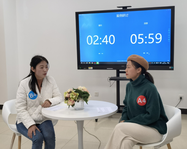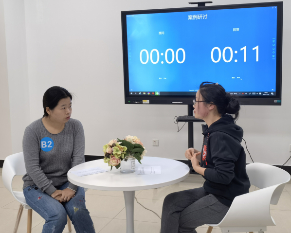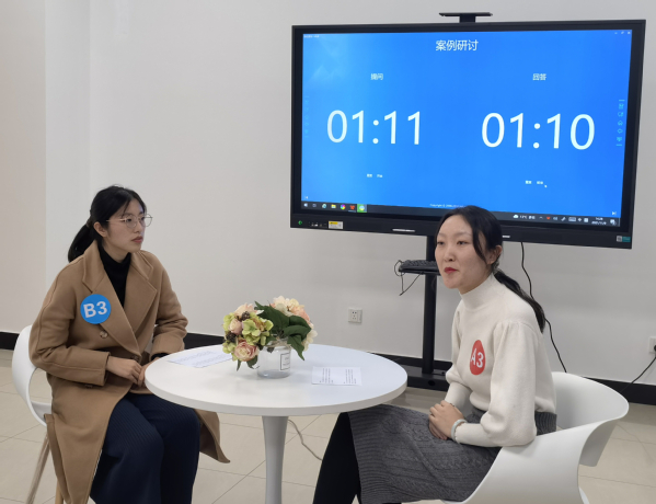 复赛采用案例讨论形式进行,初赛入围的十位辅导员根据赛前抽签确定组别、角色、案例题目。以“我提问,你回答”的方式开展,由A、B选手围绕案例,结合实际经验和特色方法,共同辨析案例原因、核心问题、思路目标、对策举措等。案例讨论内容涉及疫情常态化管理下学生日常管理、资助管理、心理健康教育、网络思政等方面。本环节贴近工作实际,真实还原了辅导员在现实工作中会遇到的典型问题,考察辅导员综合运用理论分析问题、研判问题、解决问题的能力。