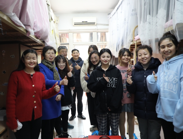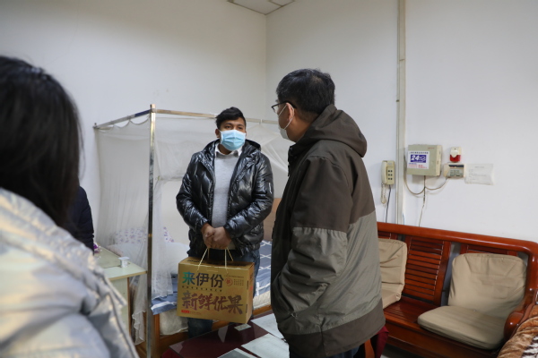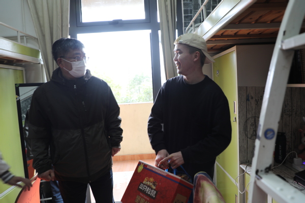 校领导还到学生寝室看望了寒假留校过年的学生,送上关怀和祝福,学生们非常开心和感动,脸上洋溢着灿烂的笑容。