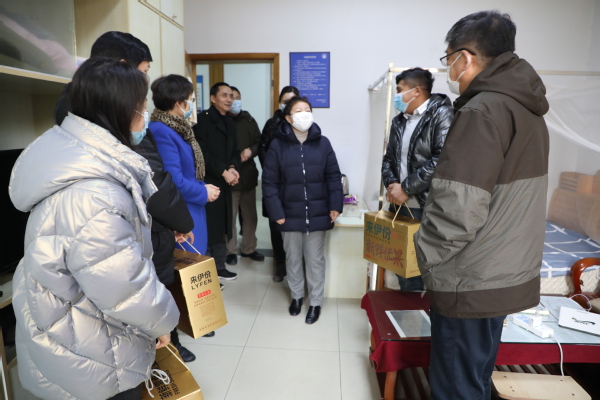 1月30日下午,校长王刚、党委书记曹蓉蓉、党委副书记王玉、校长助理黄樑带队看望慰问寒假春节期间留校师生和坚守岗位的宿管、监控、物业、安保等保障岗位以及总值班工作人员。校领导向留校师生和辛勤工作的教职工致以了亲切的慰问和诚挚的谢意,并送上了美好的新春祝福。