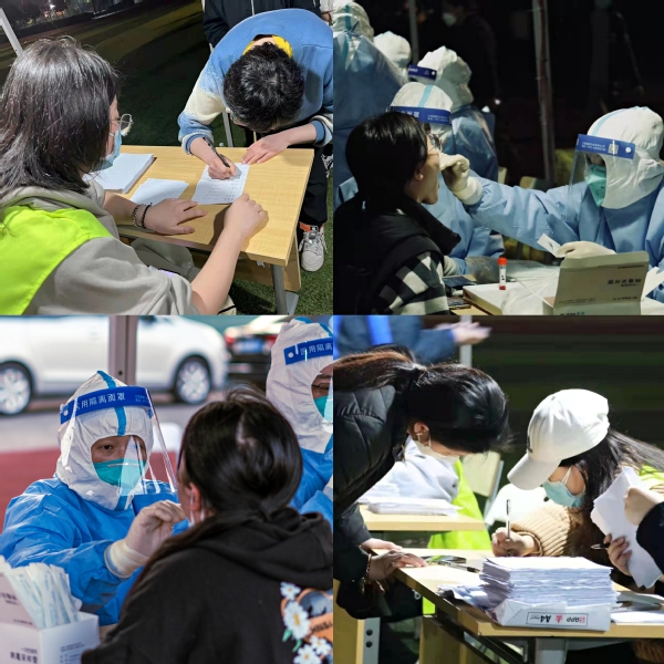 核酸检测现场,学生志愿者们各自坚守岗位,维持秩序,办理登记,搬运物资……从夜晚到凌晨,他们不知疲倦,一刻也不停歇,直至检测结束,温暖了每一个人!