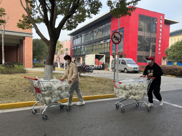 离开了核酸检测的战场,学生志愿者来送餐了,他(她)们是东海抗疫的速度,迅速而有力!