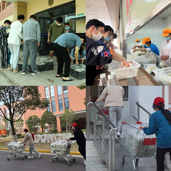 教师们接到校党委招募教师党员志愿者的通知后,纷纷响应报名,并积极投入到为学生送餐的队伍中来。他们凌晨起床,脸上没有疲倦;中午闷热的天气里,依然英姿飒爽;傍晚继续待命,心中没有退却,用自己的实际行动让鲜艳的党旗高高飘扬在抗疫一线!他(她)们是东海抗疫的颜色,阳光而暖人!