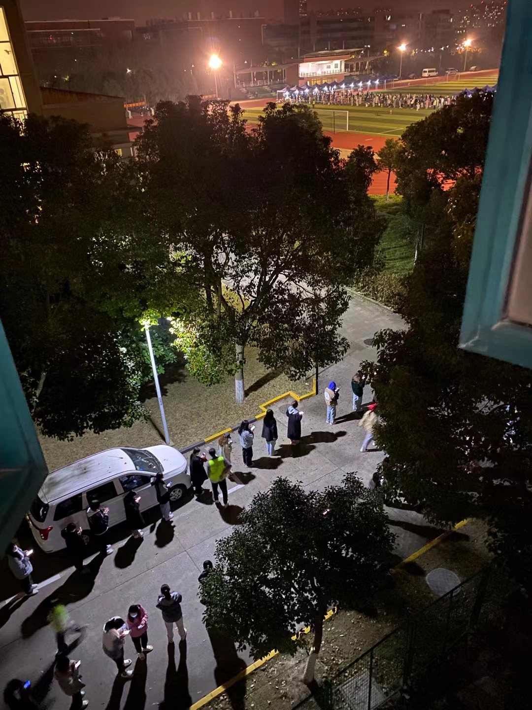 下午5点,我和志愿者们对我们所在的女生宿舍5号楼开始了第一轮排摸。这是我第一次知道我们一个楼层有20个房间、 400多人,这个人数着实让我有些许震惊,也让我对未来几天的工作有了无形的压力。晚上8点各楼层人都差不多回来了,我们开始了二轮排摸人数,确保楼层内所有人都在,然后和宿管员阿姨做最终核对。晚上我们所有志愿者开了个小会,安排接下来两天学生宿舍的送餐任务。晚上,我们开始核酸检测了,大家深夜都还在排队,大白们、校志愿者们都在紧张的工作,直至凌晨结束!