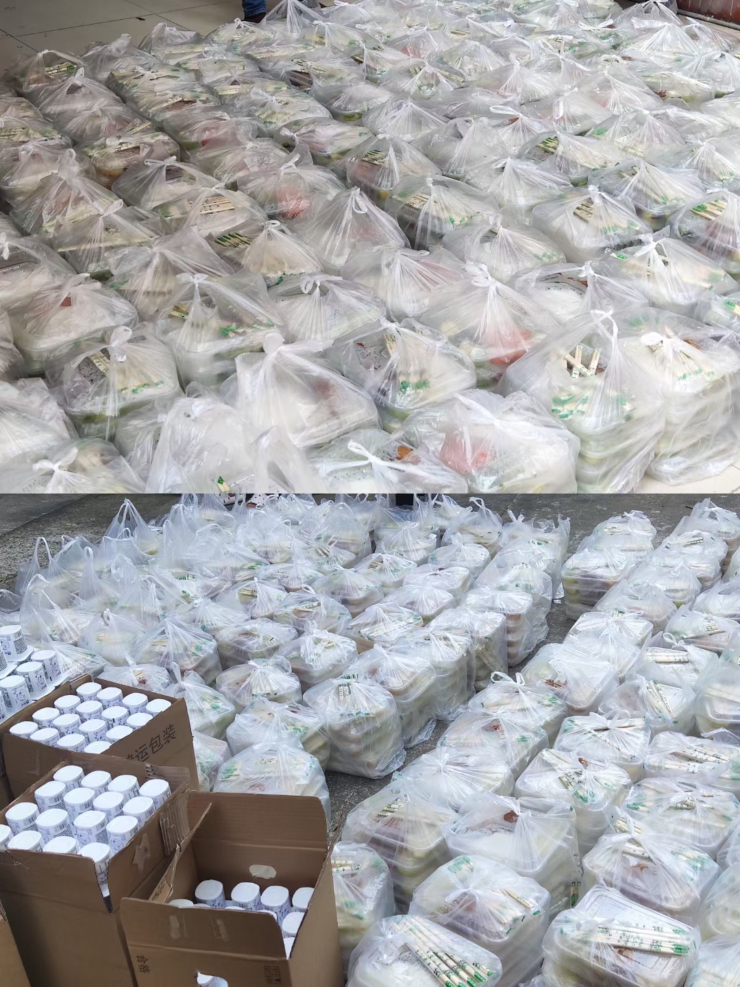 第二天一早,电话铃声震醒了在睡眠中的我,早餐到了,我们开始了早餐分发工作。从一楼到六楼,几个女生硬生生的把这400多份早餐一层层楼扛上去,一个个宿舍分发,这是一件让我们觉得又累又很有成就感的事情!