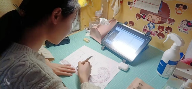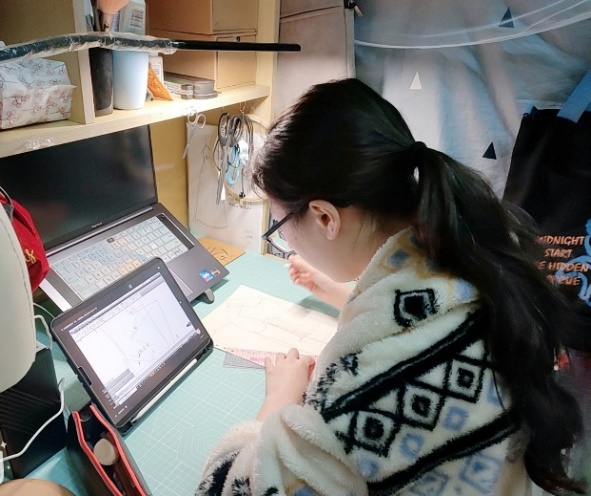 为了让我们更好的适应网课,老师选择了“减法立裁”。减法立裁和我之前接受的知识是完全不一样的,在此之前我接受的是要严谨准确,而线上的网课更要求我们在掌握一定方法的前提下有创意。我们虽说上网课多有不便,但老师依旧负责,整个课堂充满趣味又不失学习的严谨,我们有任何疑问都可以得到及时地解决。                               ——服装202班  马小艳