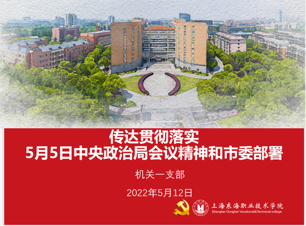 会上,党委书记曹蓉蓉向支部成员们传达了5月5日中央政治局常务会精神、上海市委扩大会议精神和市教卫工作党委、市教委防疫工作部署,校长王刚介绍了目前学校情况,支部党员对5月5日中央政治局会议精神学习心得进行交流。