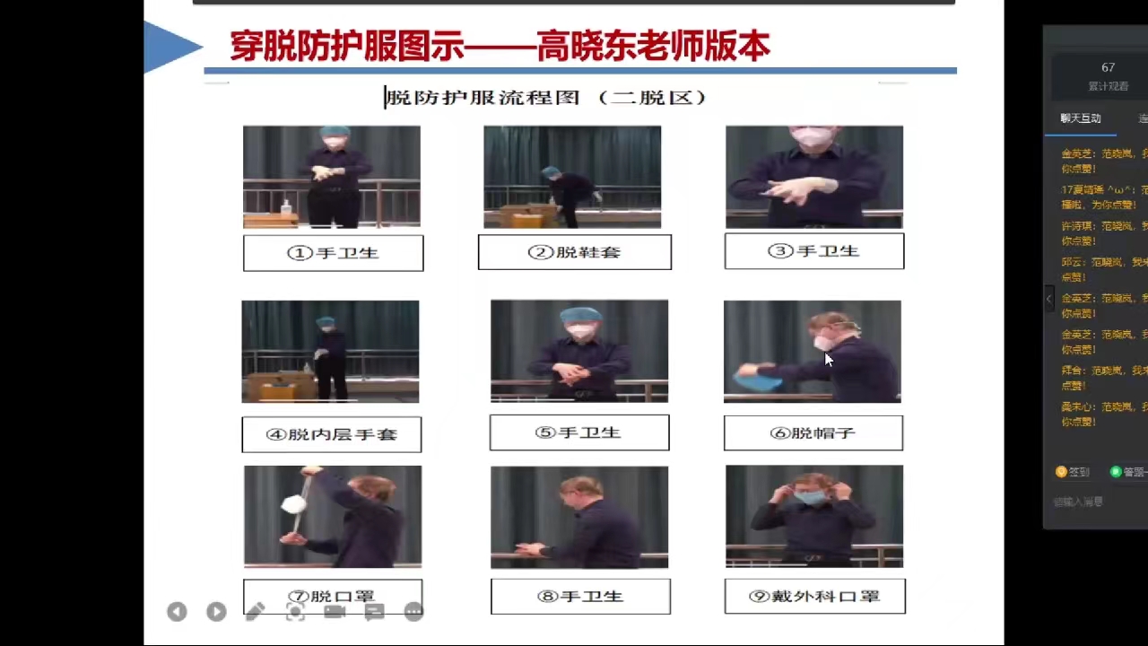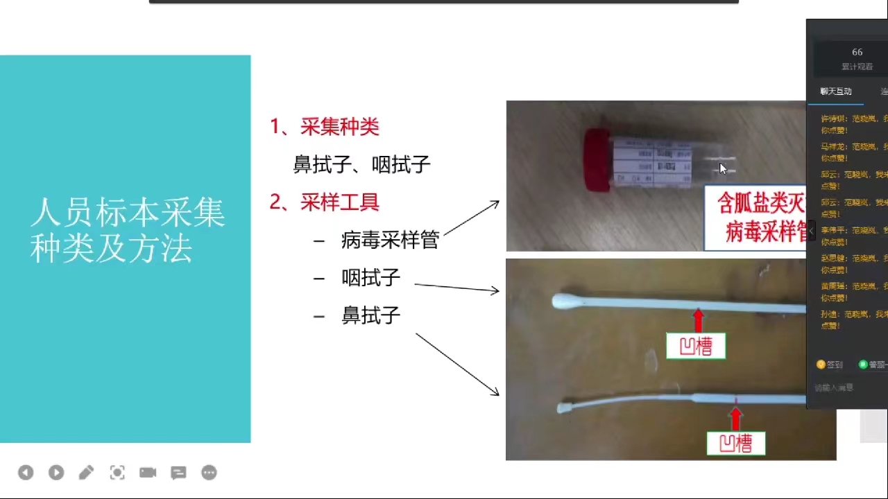 培训会上,范晓岚对鼻拭子、咽拭子采样操作流程;封管、封箱及标本转运的注意事项;个人防护用品穿脱;医疗废弃用品处置等方面进行深入讲解,同时也利用核酸采样现场演练视频,让教师们清晰直观地了解并掌握核酸采集操作细节和规范。培训会后,曹蓉蓉对志愿者们的辛勤付出表示感谢,希望大家课后认真复习,努力消化培训内容,争取考核通过。